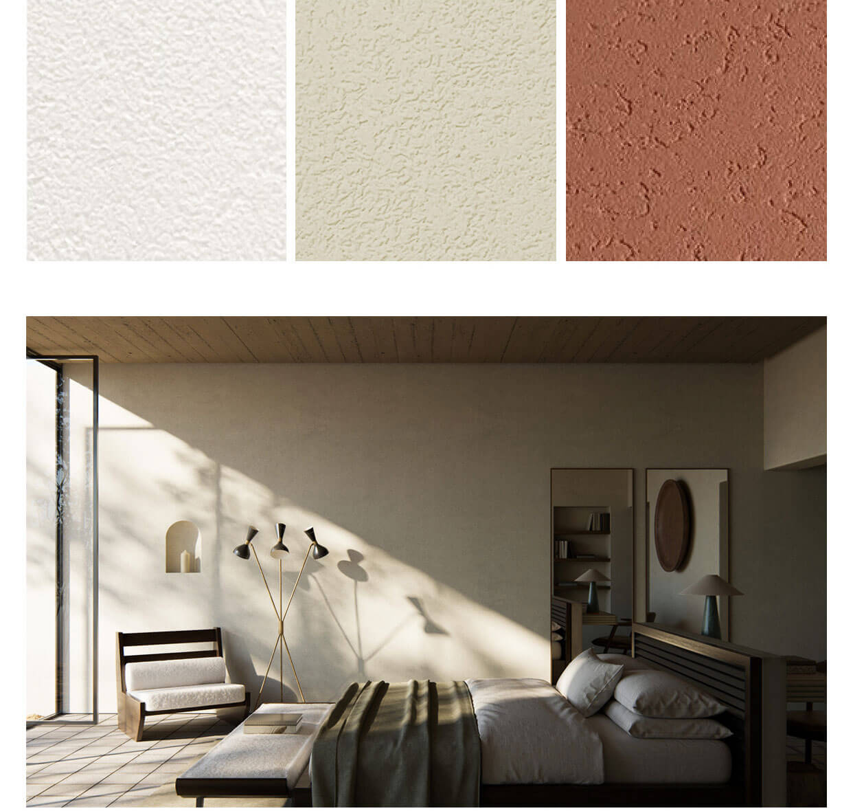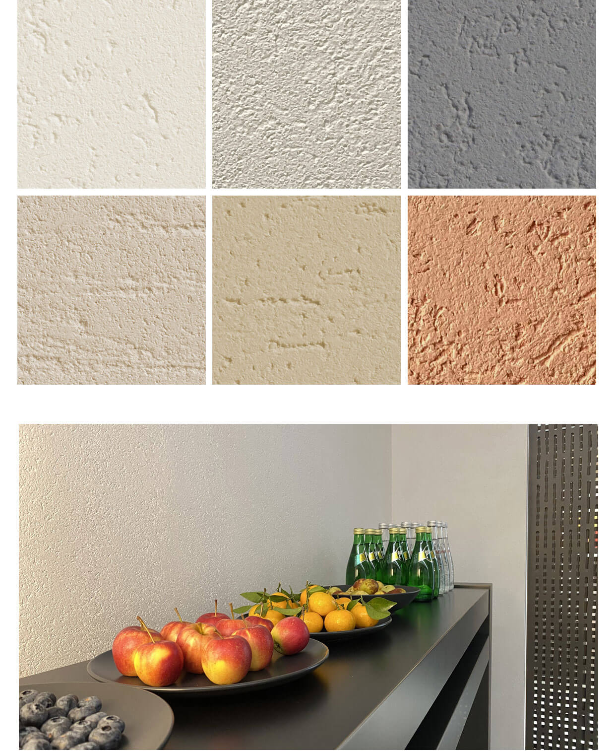 我们采用德国进口的矿物粉末颜料可保持墙面更持久不褪色,也可根据设计师的要求进行个性化定制色彩。